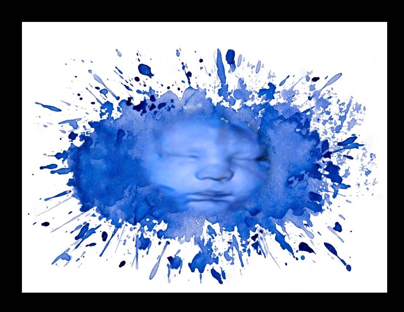 Adorable Picture of a Baby Face in a Dark Blue Cloud Water Color Ultrasound.
