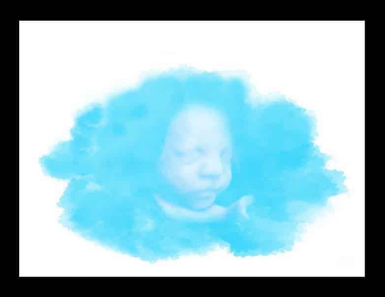 Baby in a Blue Cloud Water Color Ultrasound: 29-31 Weeks