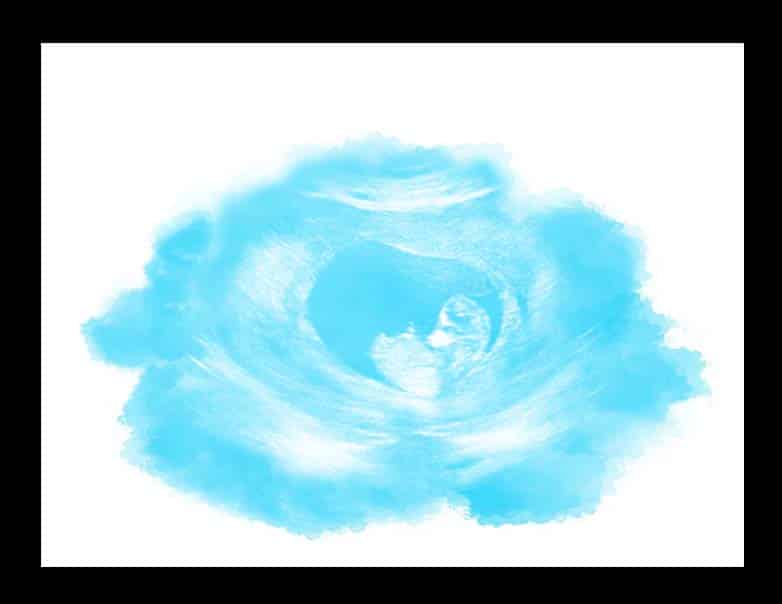 Baby in a Blue Cloud Water Color Ultrasound: 7-9 Weeks