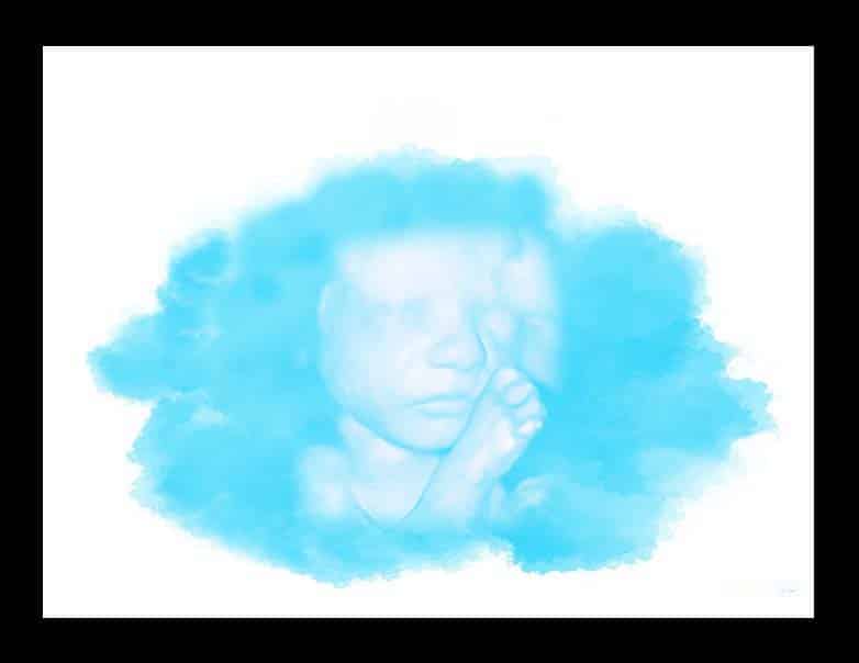 Great Baby’s Face in a Blue Cloud Water Color Ultrasound.