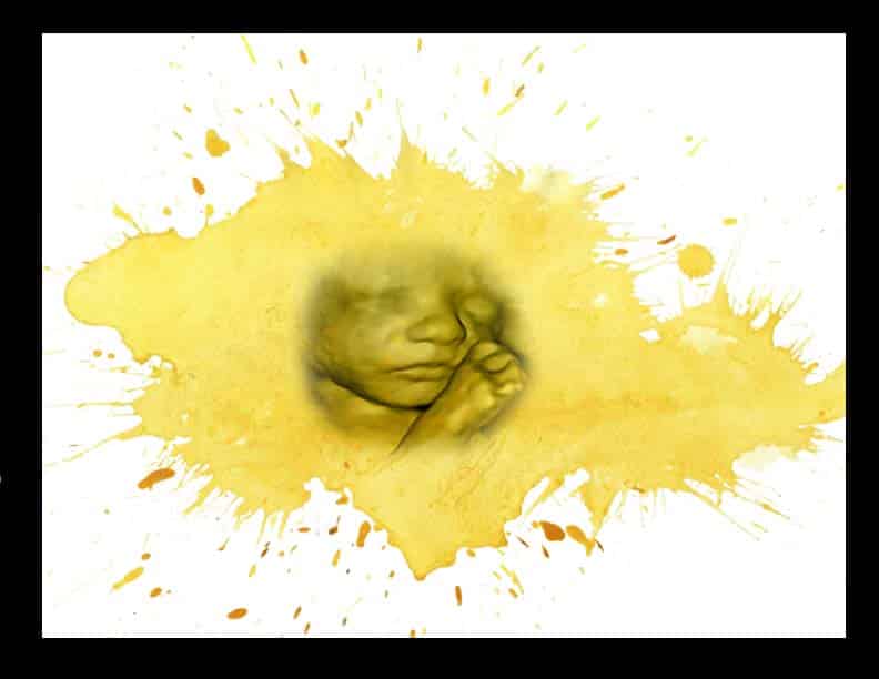 Yellow Water Color, Baby’s Foot Against Face Ultrasound: 34-36 Weeks